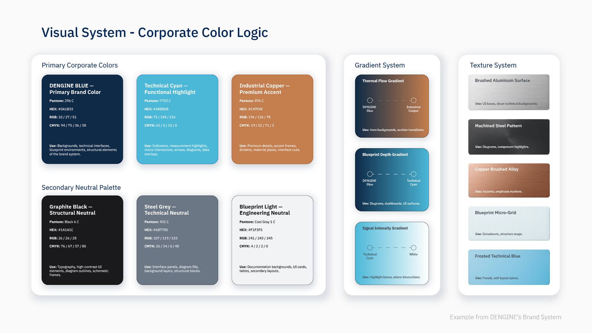 At DENGINE Studio, we apply engineering thinking to branding — every line, proportion, and color follows a functional logic.